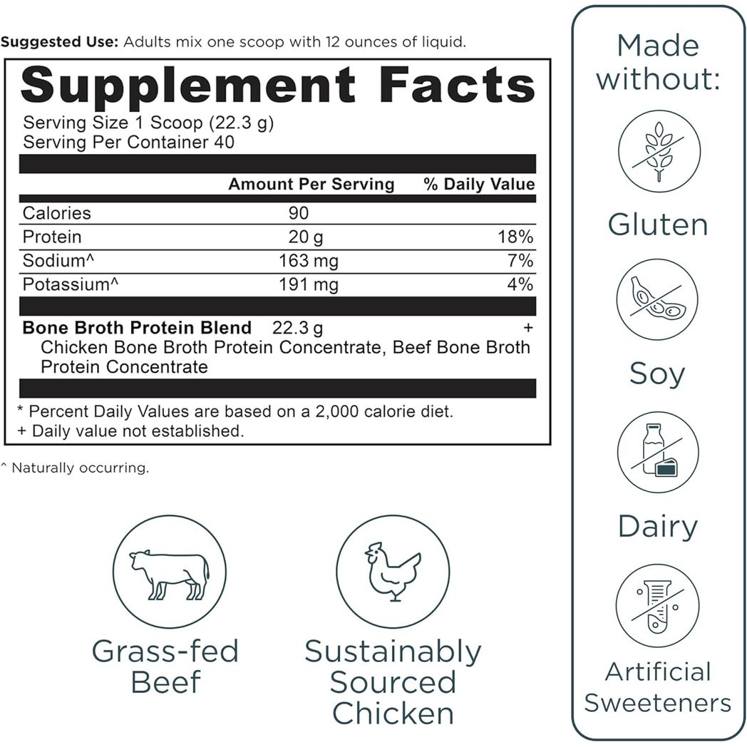 - Premium Formula: Formulated with chicken bone broth protein concentrate and grassfed beef bone broth protein concentrate for meaningful health benefits without all the prep of homemade broth.